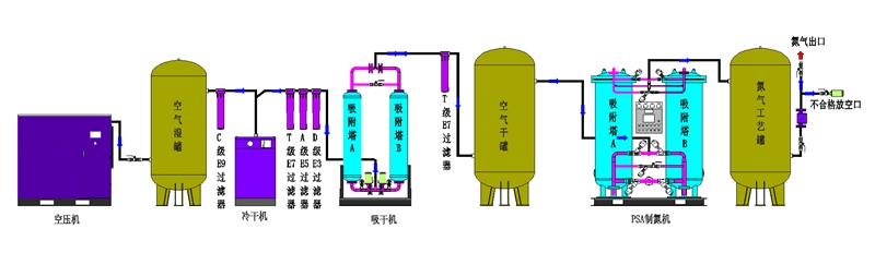 變壓吸附制氮裝置工藝流程圖